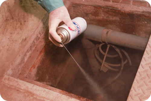 炭酸ガスにゴキブリ駆除の有効成分を溶解した防疫用殺虫剤を使用。超微粒子化した薬剤が隙間やクラックの深層部までいきわたり、ゴキブリに対し高い追い出し効果を発揮します。薬品臭や濡れ等による汚染がほとんどなく、建物や環境に配慮したクリーンな駆除を行うことができます。